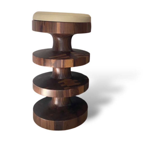 Tulipán, en madera sólida de nogal con tapicería en piel.