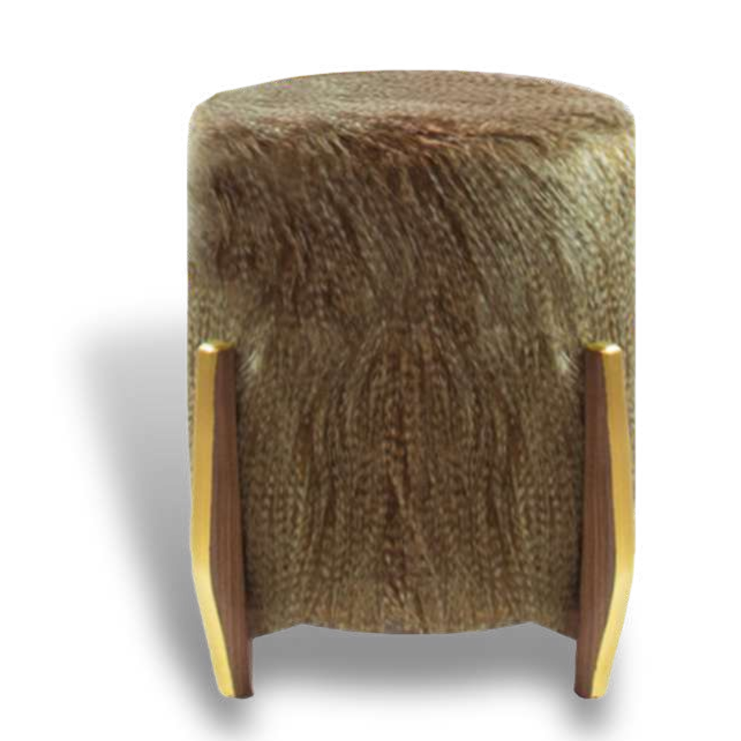 Deco, en madera sólida de nogal, detalle en hoja de oro, tapicería en peluche.
