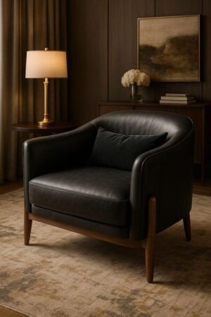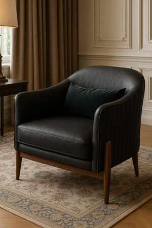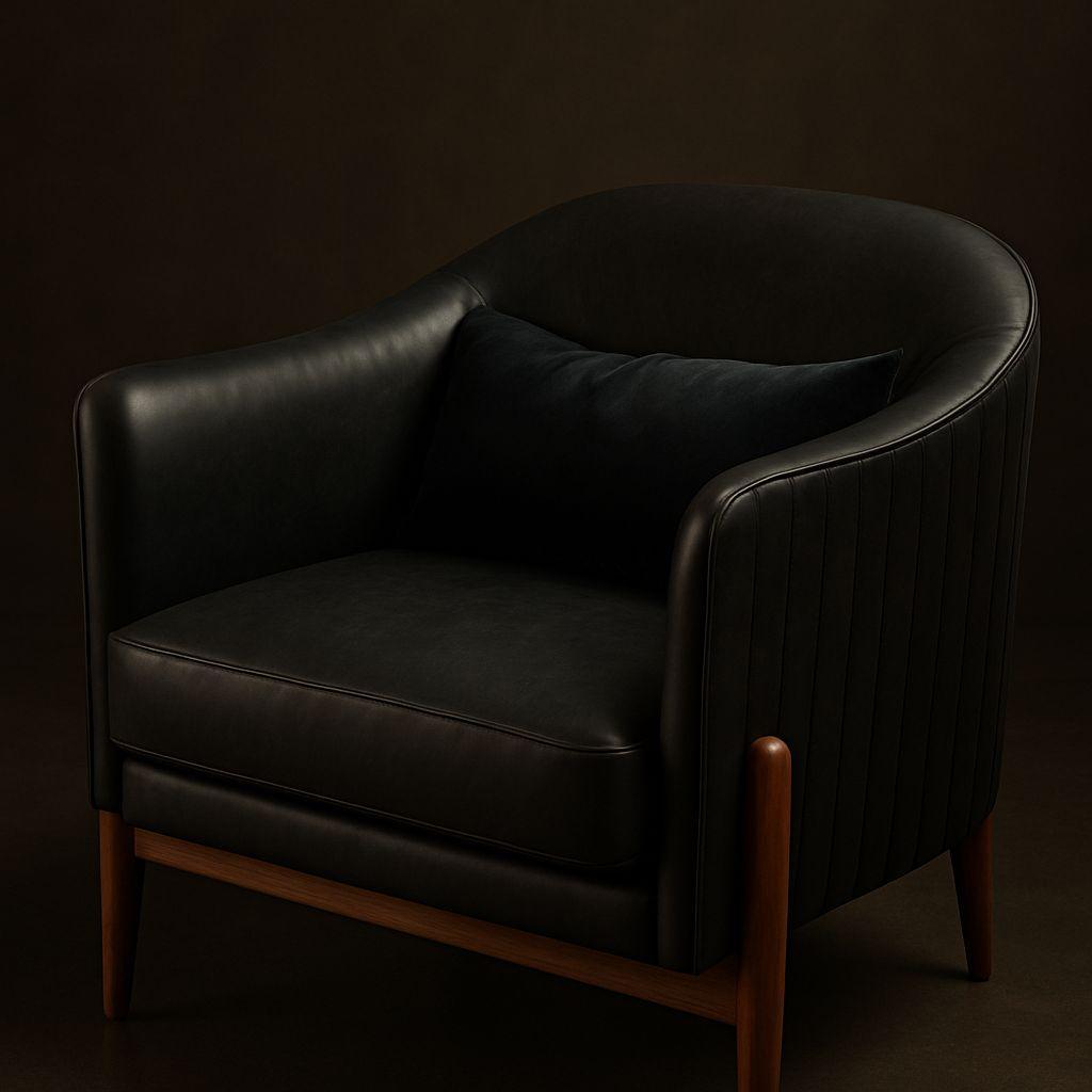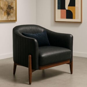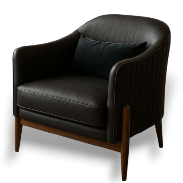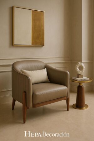 Praga, en madera sólida de nogal, tapicería piel y tela.