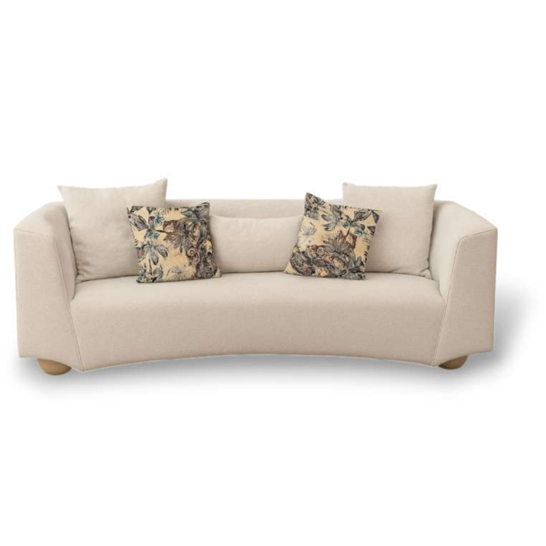 Sicilia, patas en esfera en madera sólida de fresno, tapicería en tela.